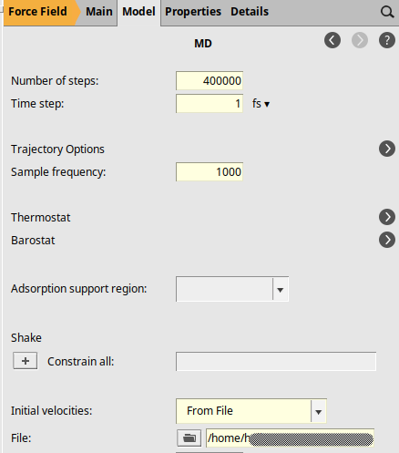 next to Task: Molecular Dynamics100001 fs298 K