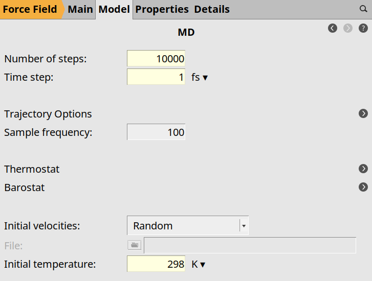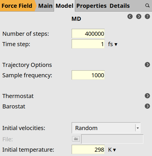 Note: The viscosity of benzene is quite low, so we can run a rather short MD simulation. Usually you would use a smaller time step than 1 fs.