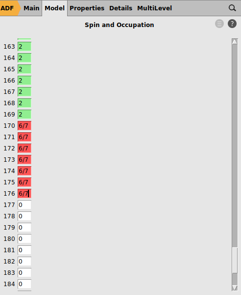 Scroll down to molecular orbitals #170, 171, …, 176 to verify that they have predominantly Eu f character and are occupied with fractional 6/7 = 0.86 electrons.