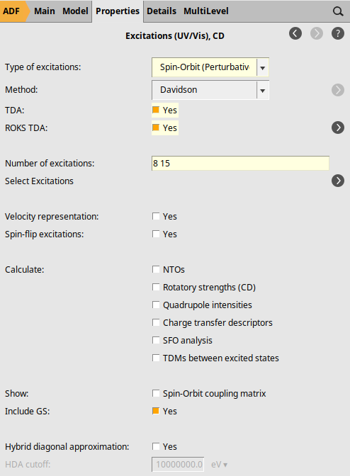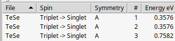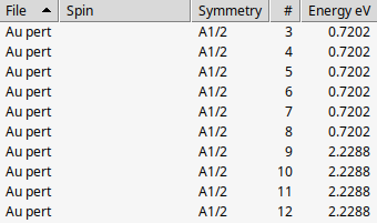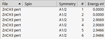 Remark: All systems calculated in the Tutorial contain some symmetry. These symmetries may have multi-dimensional irreps, in which case one can expect degeneracies in the excited state energies. In the ROKS-TDA-SOC implementation in ADF, however, symmetry can not be used. To preserve degeneracy also in calculations in which no symmetry is used it is required that all subspecies of an irrep for a given excited state are calculated (included). This means that one should choose the number of wanted excitations wisely (which is done is this Tutorial). One may have to iterate over the number of wanted excited states, if one does not observe the expected degeneracies. One may also first do ROKS-TDA calculations, thus without perturbative SOC, in which one can use higher symmetries. Note that numerical issues may also lift degeneracies. The symmetry labels labels are taken over from Refs. [1] [2].
