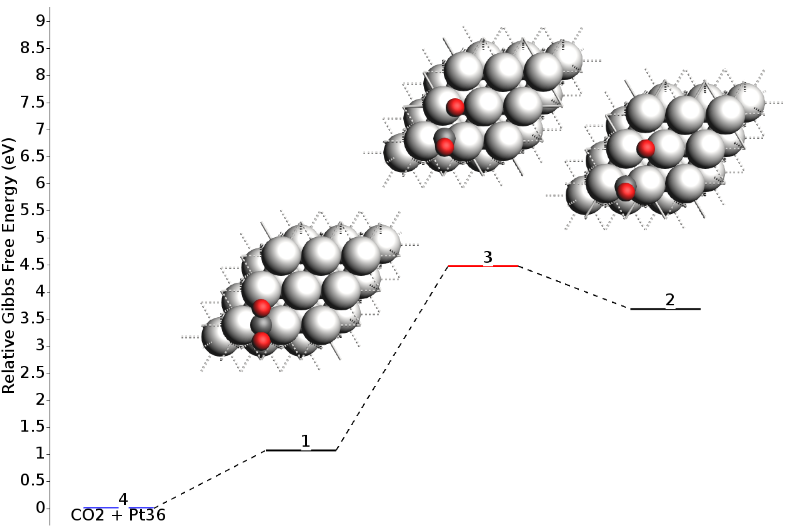 In this tutorial, we investigate the decomposition of \(\text{CO}_2\) on a Pt(111) surface. The reaction mechanism involves two steps: