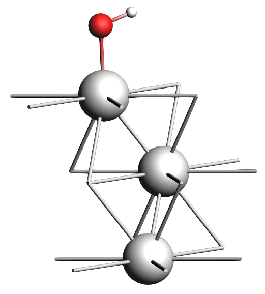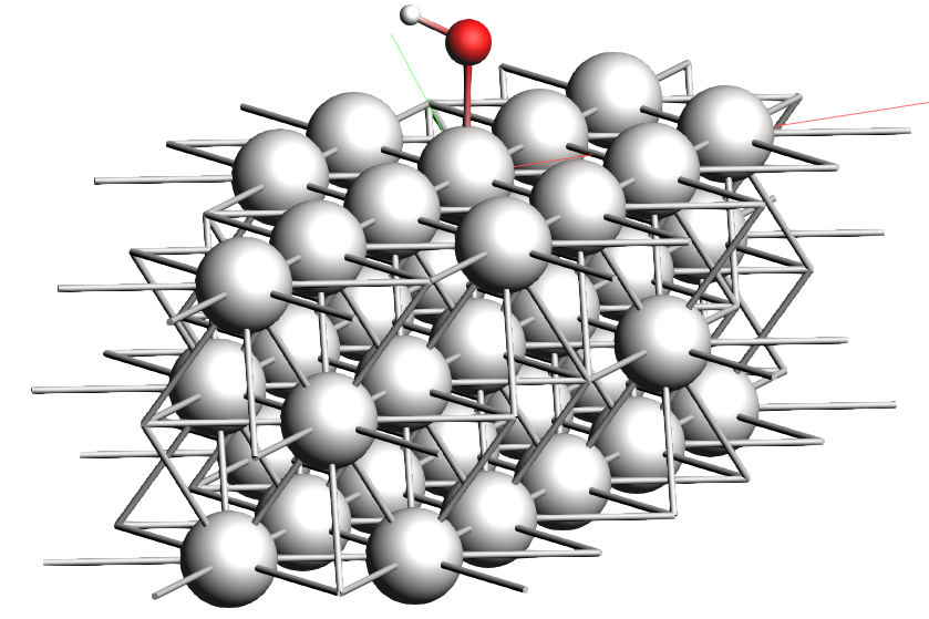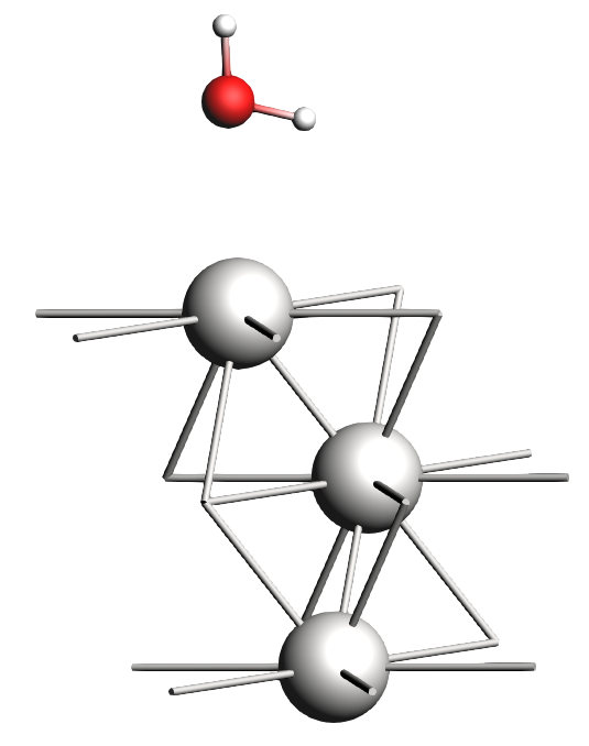 Note that neither the 1 ML H2O nor the OH geometries are physically (chemically) meaningful. Water will typically adopt a hexagonal bilayer structure. Check out the references at the end of the tutorials for a starting point on more realistic geometries.