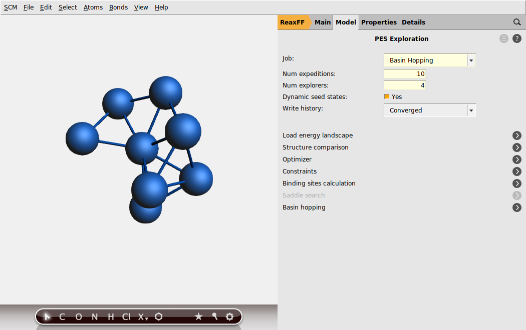 The new AMSinput window does not know yet that we want to perform PES explorations with the ReaxFF engine. Let us quickly restore the engine settings we have used for the Basin Hopping earlier: