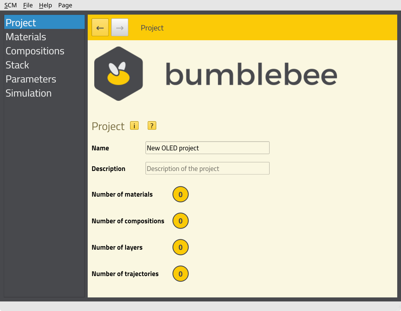 The layer morphologies (and their properties) can be imported into the BBinput GUI module for setting up Bumblebee jobs. The layers can then be combined into a microscale OLED stack, representative of a real device. Bumblebee allows the user to perform 3D kinetic Monte Carlo simulations of the electron transport through the stack. This provides detailed information on the efficiency of the OLED device. We can use this information to identify loss processes and find desirable material parameters to improve the stack design.