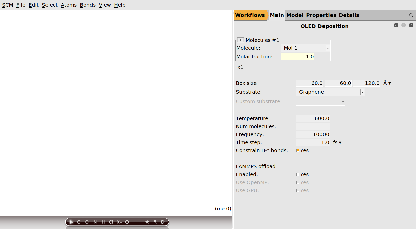 We need the 3D structures, including bonds, of the molecules we want to deposit.