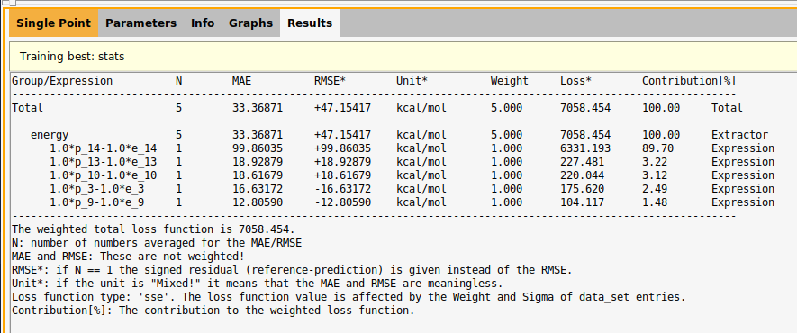 Here, you see for example that the mean absolute error (MAE) for the predicted isomerization energies is 33.4 kcal/mol.