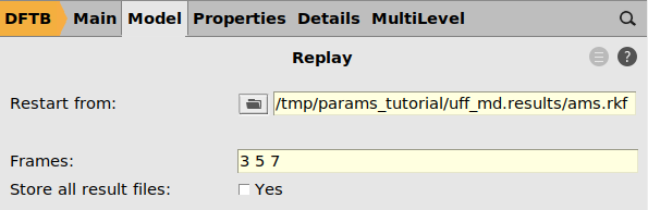 The task Replay performs a series of single-point calculcations on structures taken from an ams.rkf file, for example a molecular dynamics trajectory.