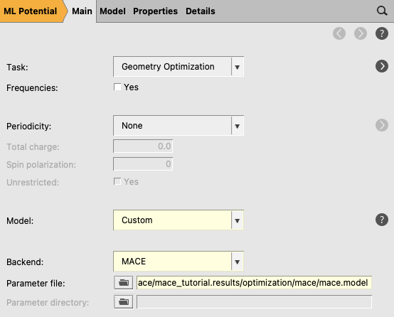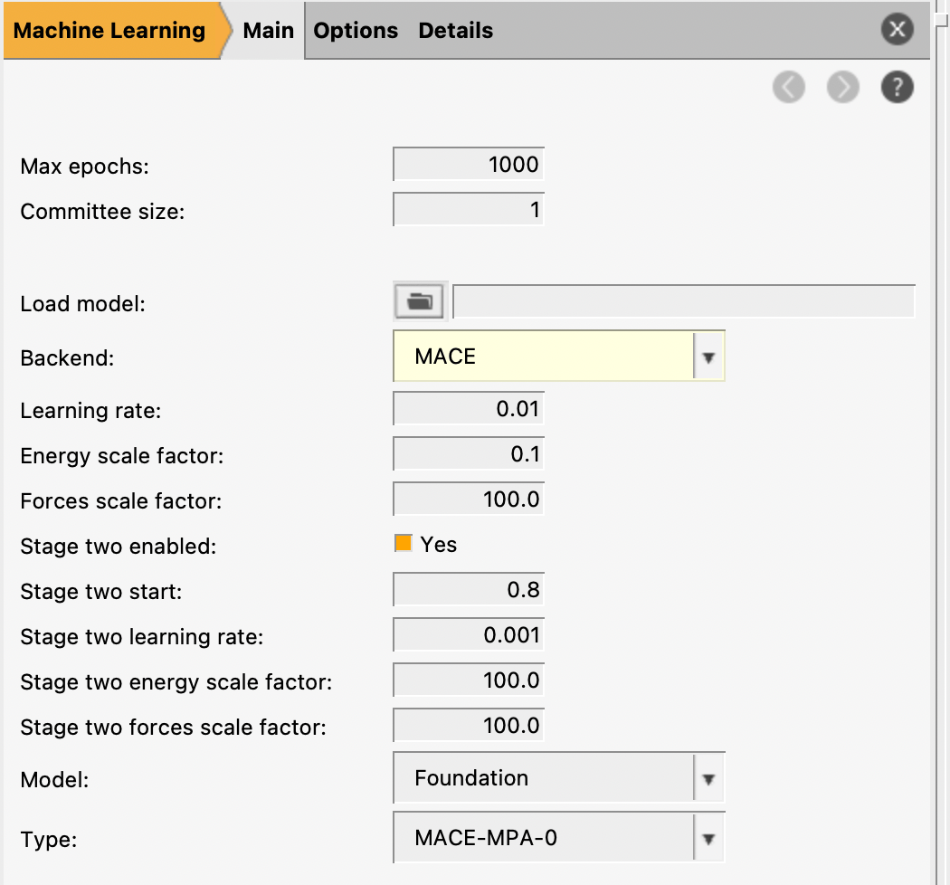 Model File: this starts the training from a custom pretrained MACE model (for example, a previous retraining or MACE model not available in AMS).