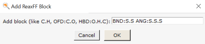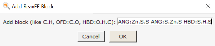 Now add the remaining blocks ATM:Zn, BND:H.H, BND:Zn.H, BND:Zn.Zn, BND:Zn.S, ANG:Zn.Zn.S, ANG:Zn.S.Zn, ANG:Zn.S.S, ANG:S.Zn.S