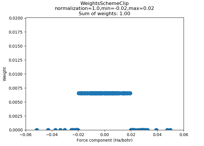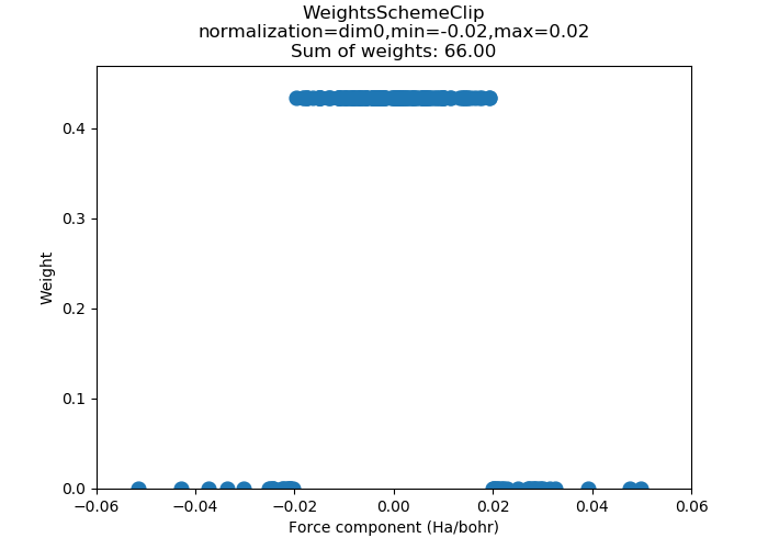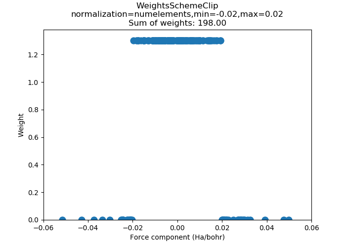 # the weights for force components smaller than -0.03 Ha/bohr or bigger than 0.03 Ha/bohr become 0
