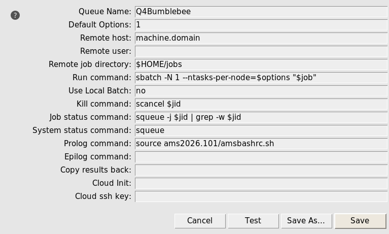 Fig. 1 Example AMSjobs queue definition for Bumblebee on a remote SLURM system¶