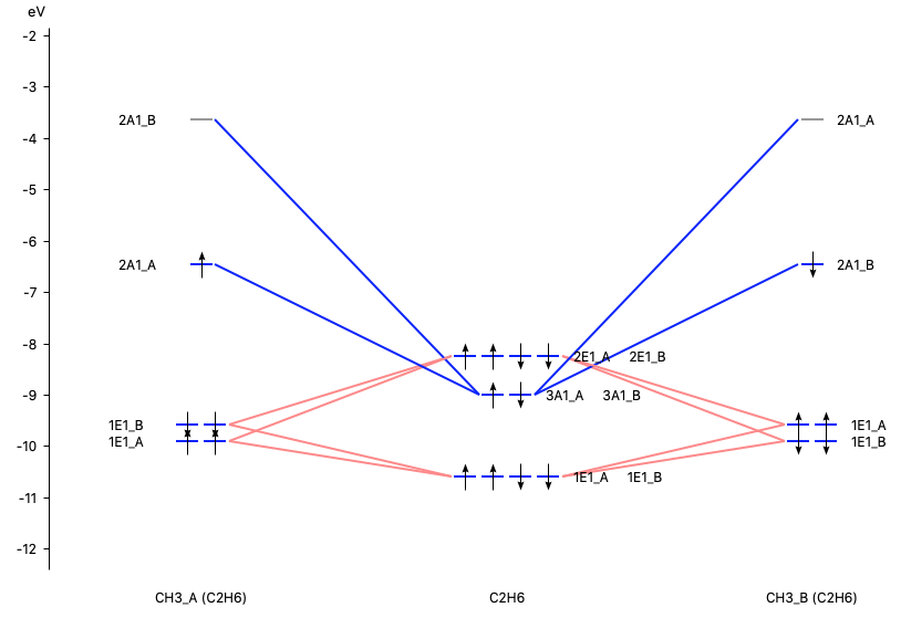 This tutorial explains how to perform an energy decomposition analysis (EDA) of a molecule with unrestricted fragments, for example the CH3 groups of ethane. Hereby, the user can examine which interactions result in the stable molecule. To see an explanation of these different interactions or to do an EDA without unrestricted fragments, see the EDA of Ammonia Borane tutorial.