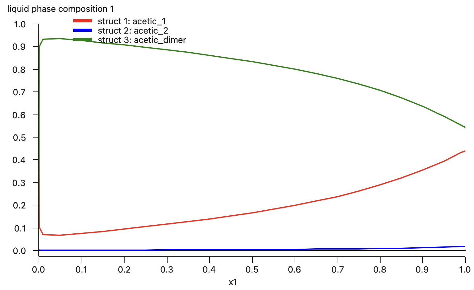 Now, we perform the same steps as above in the Binary Mixtre VLE/LLE module, except this time we will use the acetic_acid_conformers.multiform instead of acetic_2.coskf.