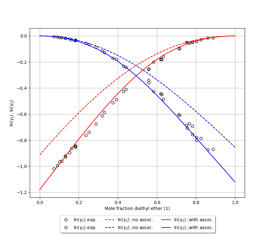 Finally, we can compare the two approaches to experiment [2]. We observe that the inclusion of the explicit association greatly improves the agreement with experimental values.