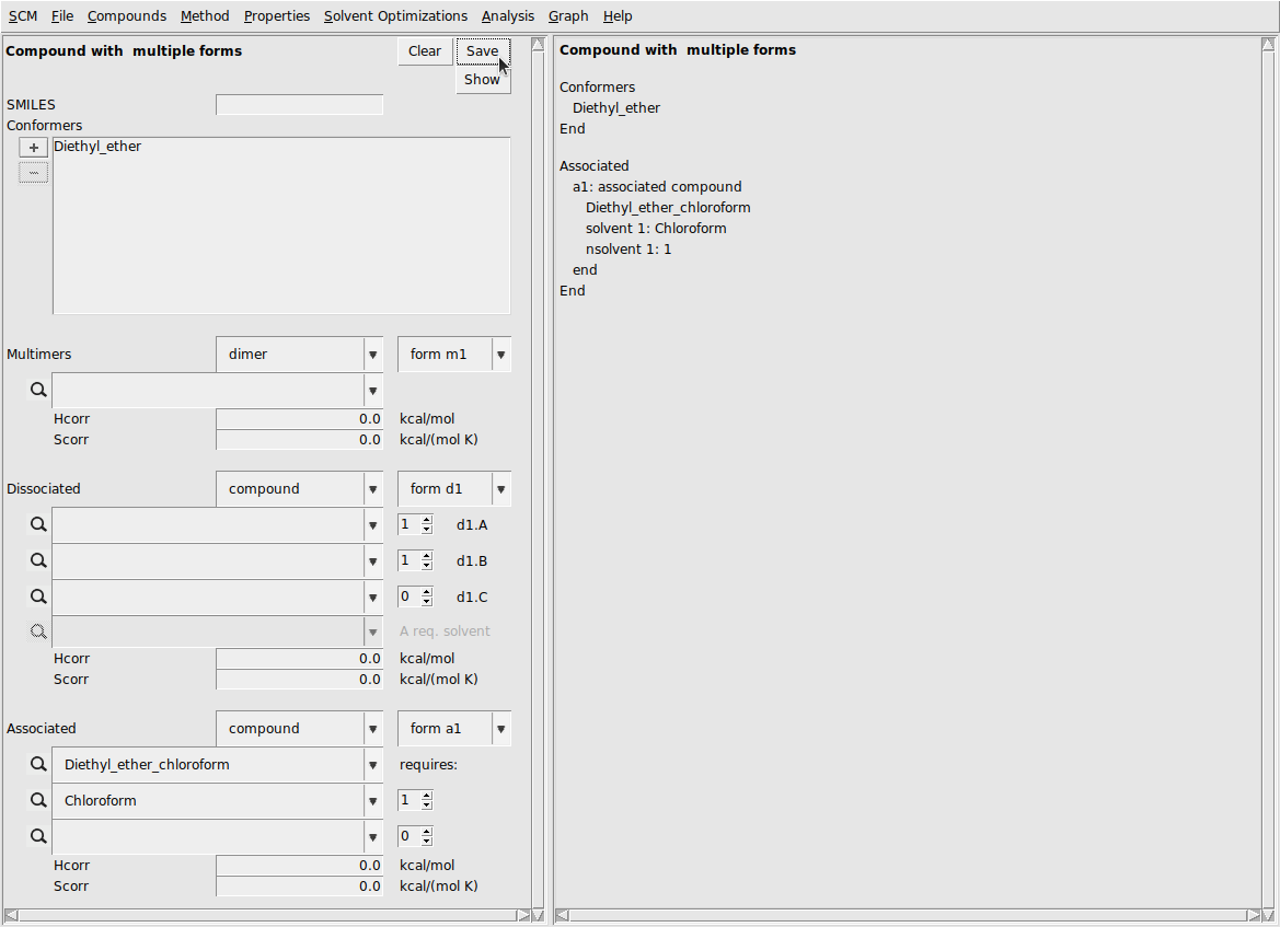 The multi-species compounds input is used to organize information about a compound that can exist in multiple forms. It can be accessed in the COSMO-RS GUI with a single step: