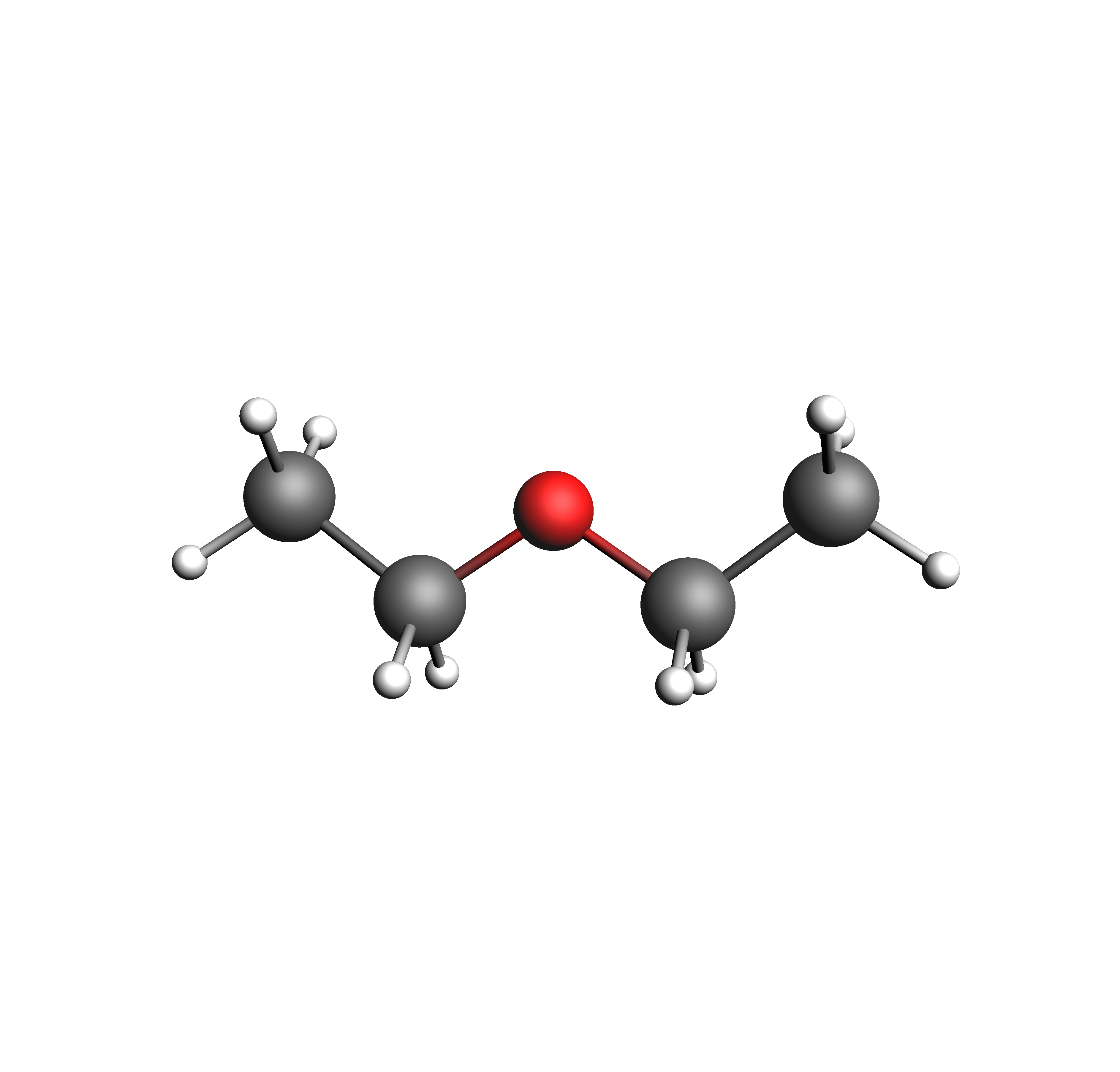 Structures used in the diethyl ether chloroform system: diethyl ether, chloroform, and the associated complex (clockwise from top left)