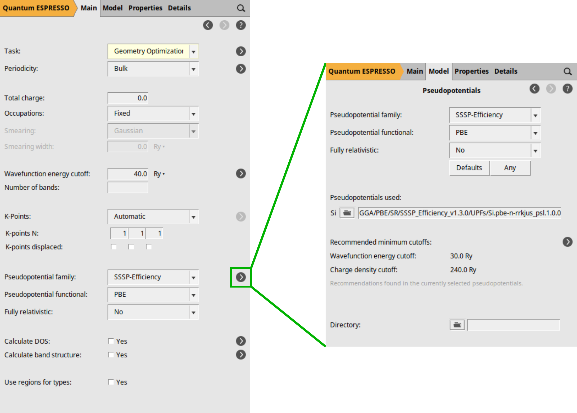 button located to the right of the Pseudopotentials family, you will be directed to the Pseudopotentials selection details.