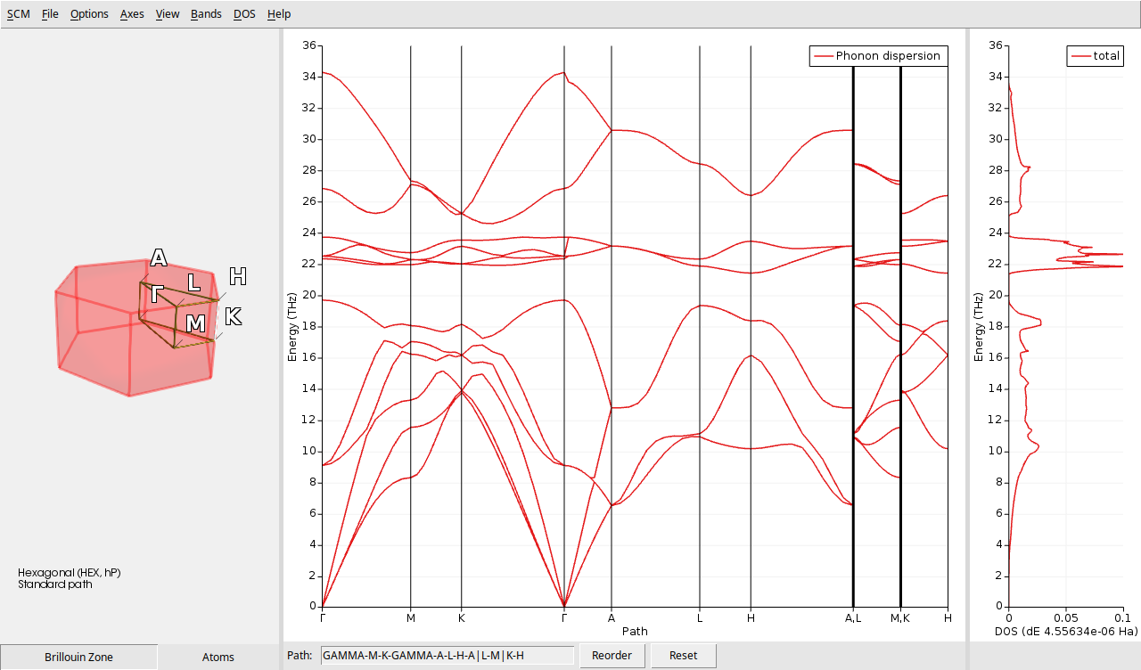 The AMSband module allows you to analyze both the Band structure and the DOS. Both properties are widely used because they reveals key features such as the distinction between acoustic and optical modes, the dispersion and anisotropy of phonon frequencies, the presence of frequency gaps, and the distribution of vibrational modes.