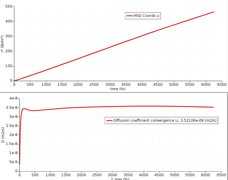 We are now ready to run the final MD simulation to compute the Lithium diffusion coefficient D at T=1600 K.