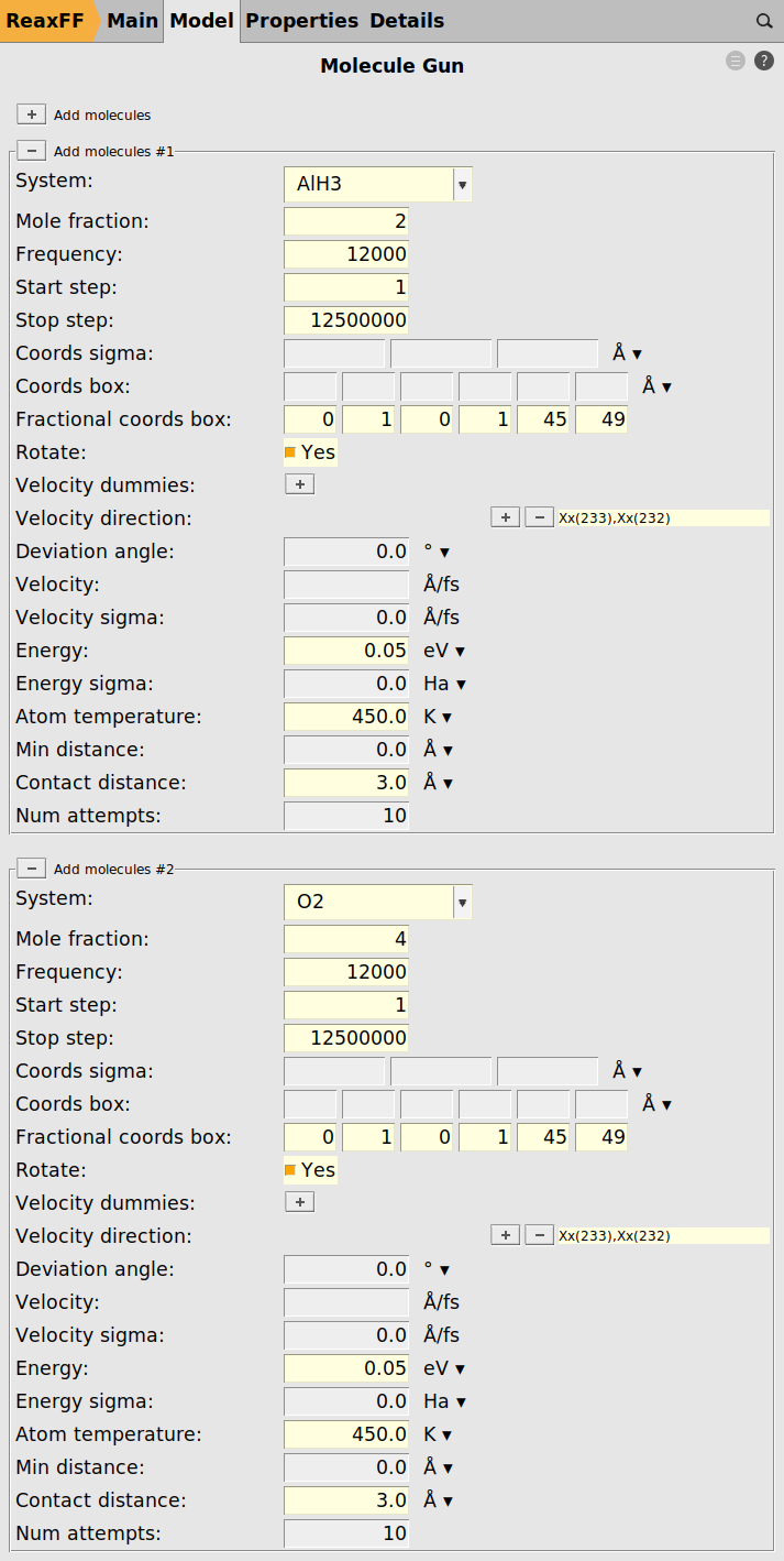 We can now use these imported regions as O2 and AlH3 projectiles in the molecule gun module.