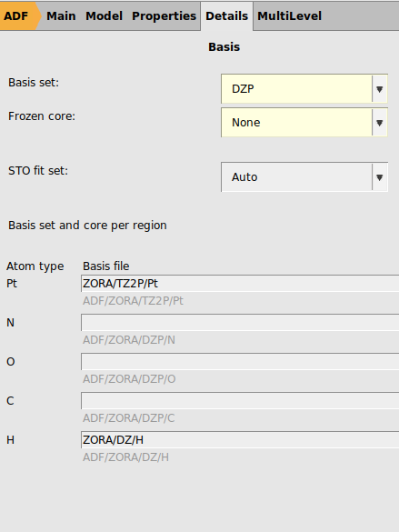 ZORA/TZ2P/Pt for PtZORA/DZ/H for H
