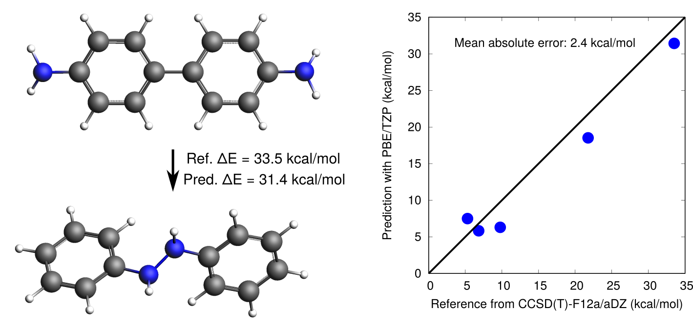 Fig. 5.2 An example reaction energy from the ISOL benchmark. The predictions were evaluated with DFT (PBE/TZP). This tutorial will instead use UFF, which gives much worse predictions.¶