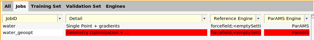 Add Single Job. This, together with Task (for new job) → PESScan, sets up an equivalent PESScan to be run during the parameter optimization. This is illustrated in the ReaxFF (basic): H₂O bond scan tutorial.