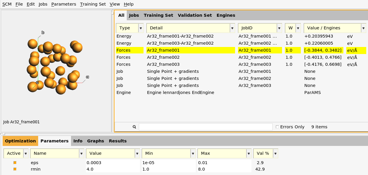 How to run the reference calculations and import the results into ParAMS is explained in the Import training data (GUI) tutorial. The data for this Lennard-Jones tutorial was generated following the section MD with fast method followed by Replay with reference method.