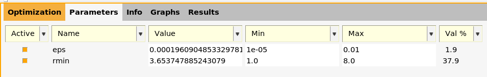 The Active attributes of the parameter set are checked, meaning that they will be optimized. To skip optimizing a parameter, untick the Active checkbox.