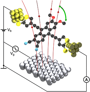 In the November 2010 issue of ACS Nano, Jos Seldenthuis and coworkers at the Delft University of Technology published a design for an all-electric single-molecule motor which has drawn worldwide interest. The rotating moiety of the molecule exhibits a large dipole moment, which enables it to be driven by an external electric field. The molecule is conjugated when planar. During rotation the conjugation breaks, which enables the detection of the rotation through the modulation of the low-bias conductance. Advantages of this design over light- or thermally driven motors include full control over the speed of rotation through the frequency of the oscillating external field.