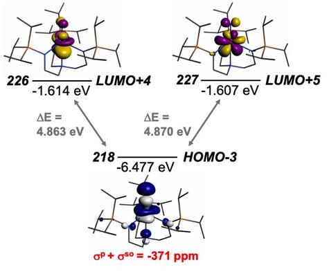 In a recent Nature Communications paper, the Liddle group manages to obtain the solid state NMR spectrum of a 15N labeled U(VI)-nitride complex. DFT calculations with ADF helped to understand the extremely large upfield shift and anisotropy through a detailed NLMO analysis of the diamagnetic, paramagnetic, and spin-orbit contributions to the NMR tensor (see tutorial).