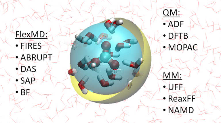 The FlexMD interface provides a python interface for setting up these adaptive QM/MM calculations with different modules in the ADF molecular modeling suite (ADF, DFTB, MOPAC, ReaxFF, UFF) and with NAMD.