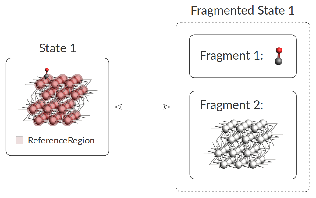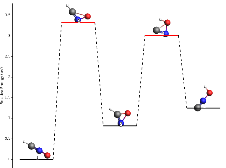 Lines connecting the the binding sites will be drawn if 1) there is a transition state connecting two local minima associated to these binding-sites (notice that may there are multiple local minima associated with the same binding site), and 2) there is at least an atom (from the adsorbate region) that changes its position from the first binding site to the second one mediated by the same transition state described above. In this process, AMS will align as much as possible all local minima and transition states to the input’s file structure but ignoring the atoms in the region adsorbate trying to establish a common reference frame (see also the StatesAlignment input block below).