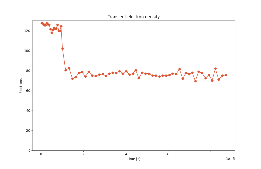 During this process, we first want the device to be operating at steady-state conditions, i.e. having a stable internal field. A pre-equilibration stage may be specified in the simulation settings to allow the system to de-correlate from the initial state, approaching the device equilibrium. Simulation statistics will then only be generated for the samples obtained after pre-equilibration.