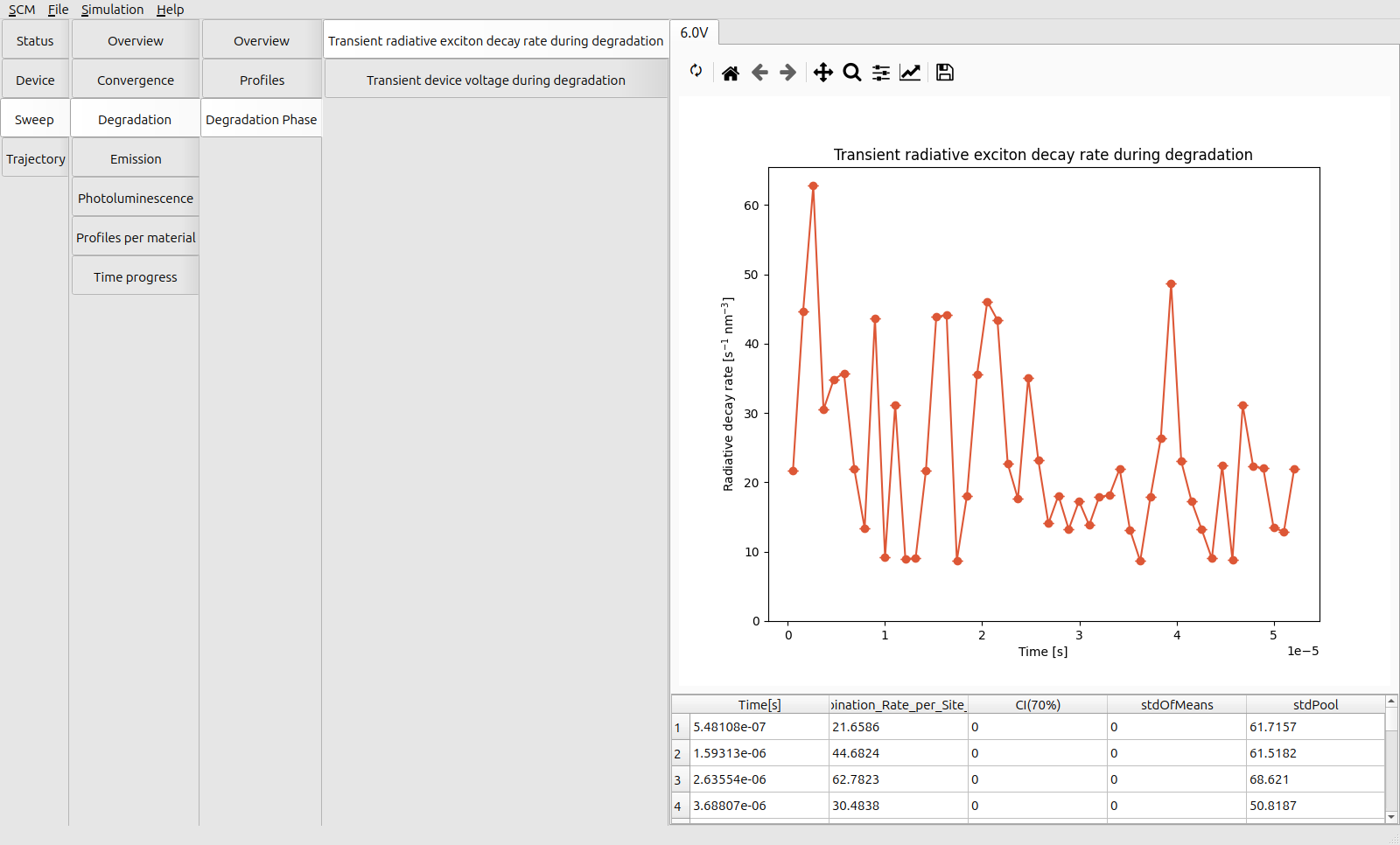 Monitor the progress of the simulation using BBresults (SCM → BBresults). Device degradation statistics are found in the Sweep → Degradation section.