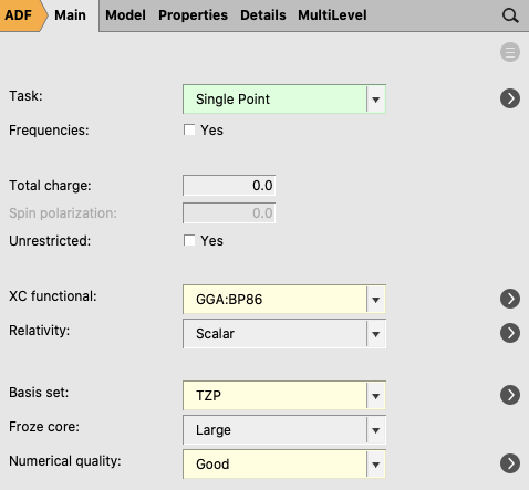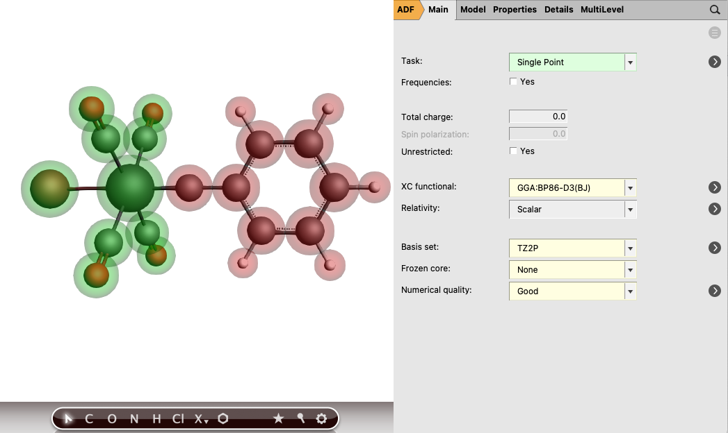 To calculate \(\Delta E\), the energies of optimized NH3, BH3 and H3N-BH3 need to be calculated. Note that another basis set and functional can be used as well. Symmetry will be used, which may help in the analysis. Open AMSinput (SCM → New Input), and perform the following steps: