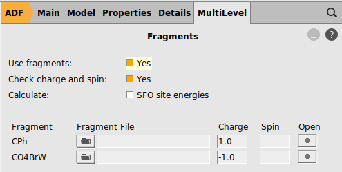 The fragment [Cl3(dme)W]-1 has problems with SCF convergence. It is difficult (or impossible) to converge the SCF with an aufbau solution. Therefore one can use an explicit non-aufbau electron configuration. Note that the following is an expert option. If you do not include the next expert steps you may get a different non-aufbau solution, and thus a different energy decomposition analysis for Cl3(dme)W-CCMe3 for this case of charged fragments.