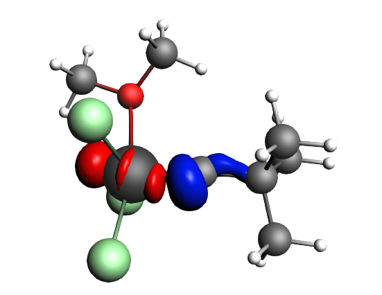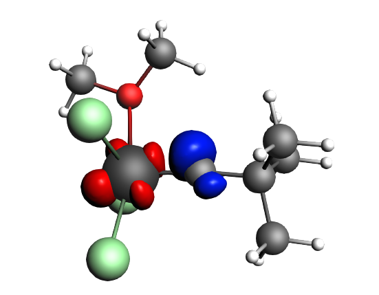 Some remarks on the analysis. The EDA depends on the fragments chosen, whether neutral or charged fragments are used, and which spin state they have. For the EDA-NOCV method it is necessary that the sum of the number of spin-α orbitals in the fragments is the same as in number of spin-α orbitals the full complex, likewise for the number of spin-β orbitals. If there is (near) degeneracy between different electron configurations of the fragments, for the analysis it is best to use the electron configuration of the fragments such that they are so called ‘prepared for bonding’ in order to minimize the Pauli repulsion in the electron pair bond. For example, if one has two fragments which both have unpaired electrons, one typically would put the unpaired electrons of the first fragment in the spin-α orbitals and the unpaired electrons of the second fragment in the spin-β orbitals. In this example this will be used, but not all possible reasonable electron configurations will be investigated, which might have been better ‘prepared for bonding’. Note that here so called ‘real’ unrestricted fragments will be used, which was not possible in the ADF version that was used in Ref. [3]. This means that the energies in the EDA that will be reported here are not directly quantitatively comparable to those in Ref. [3].