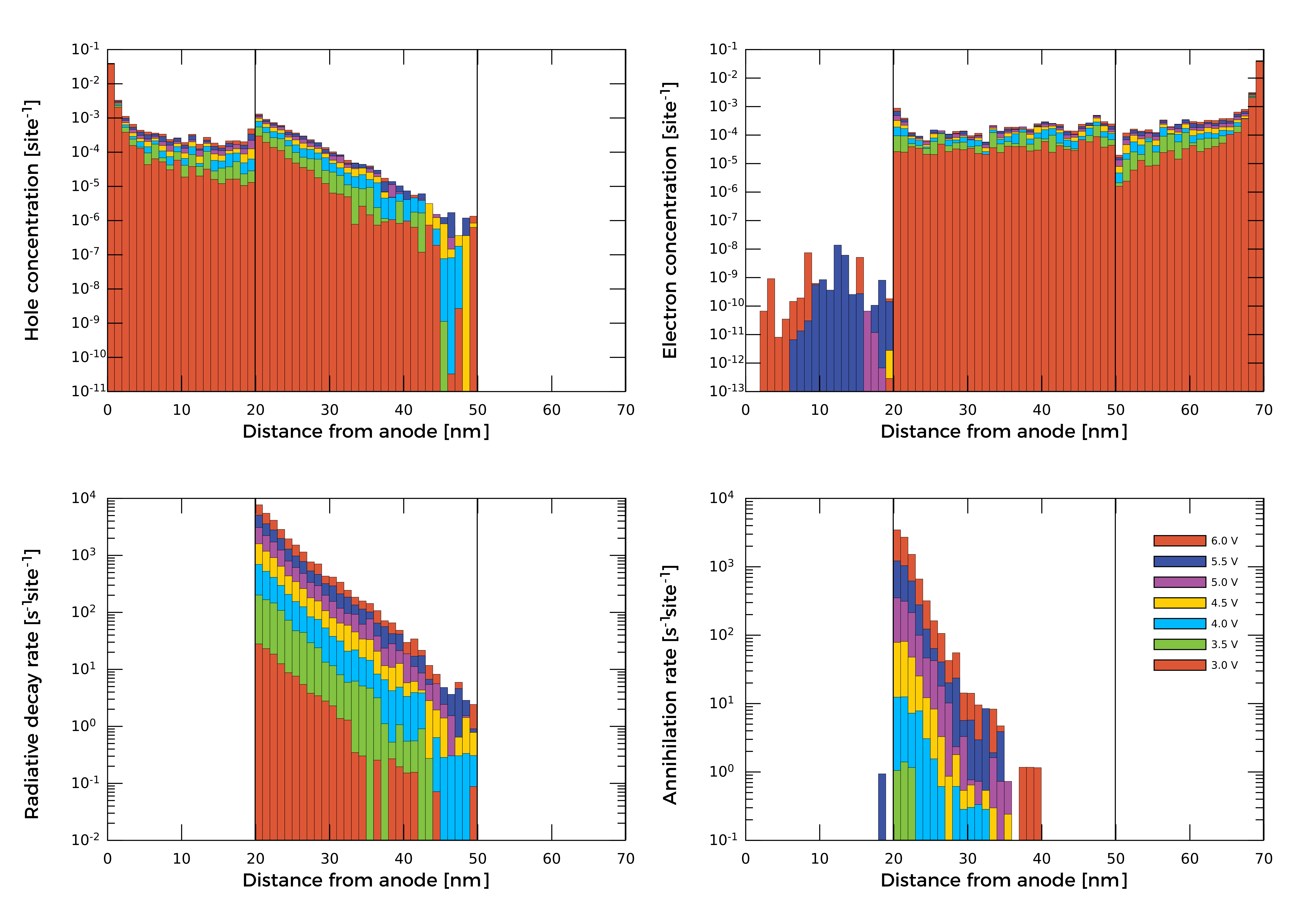 Tutorials for performing simulations of electronic and excitonic processes in OLED devices using the Bumblebee software. The full list of tutorials can be found in the Bumblebee documentation.