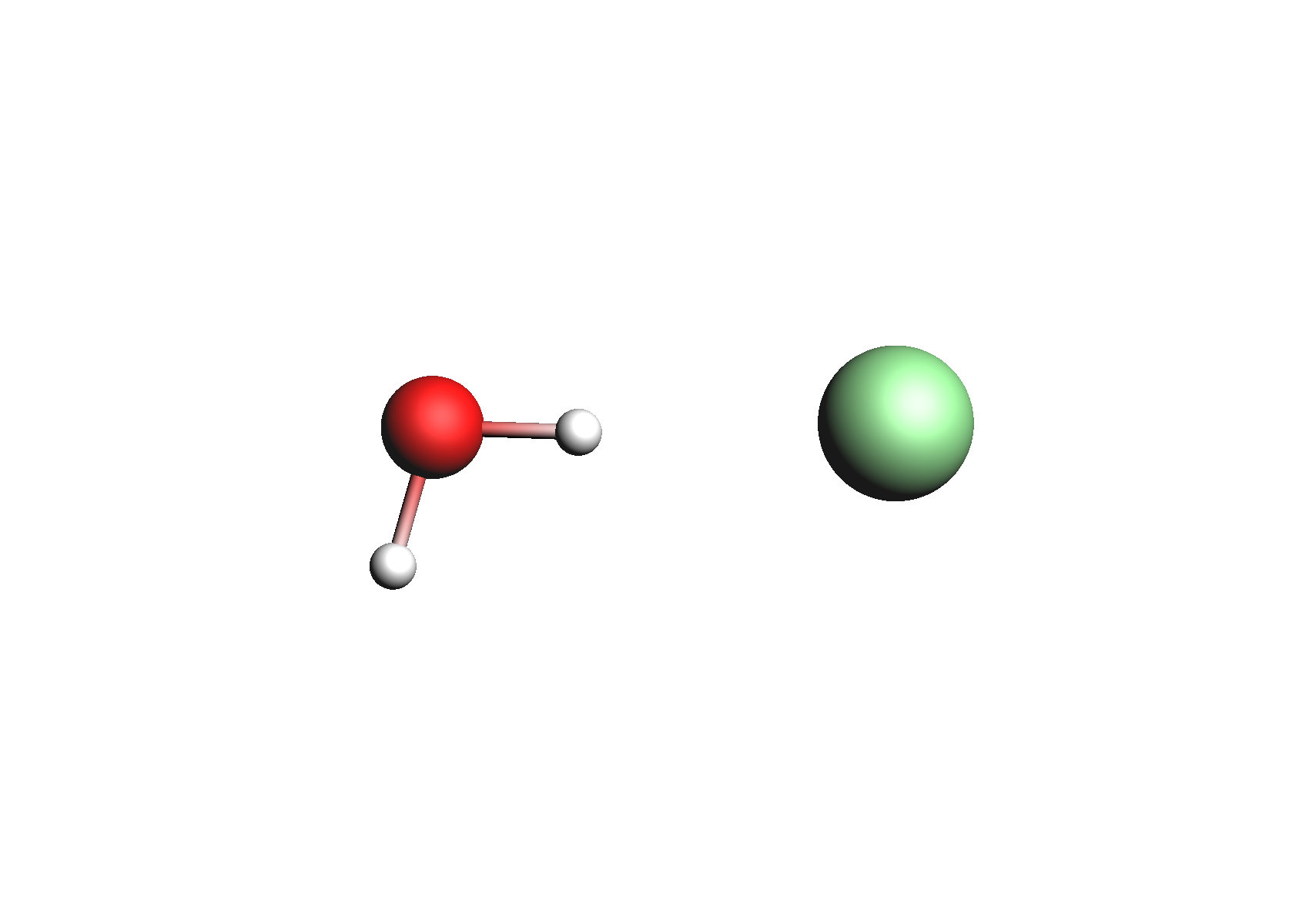 First, we need to do a series of calculations to generate .coskf files for the Na+ and Cl- ions with various degrees of hydration. The geometries of these structures are shown below: