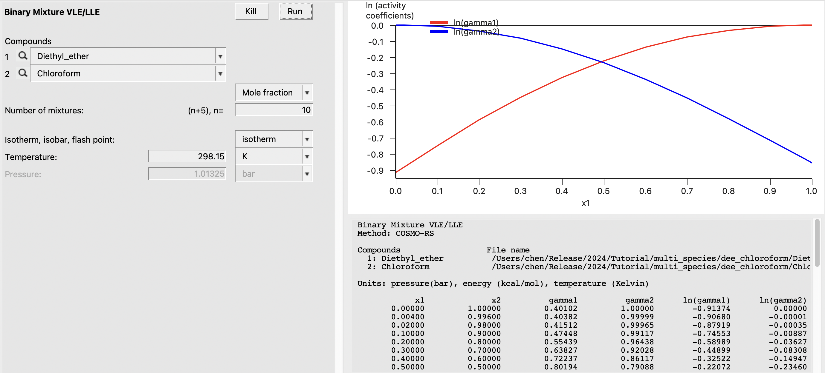 Now, we’ll use the multipleform file in place of the diethyl ether file and repeat the binary mixture calculation.