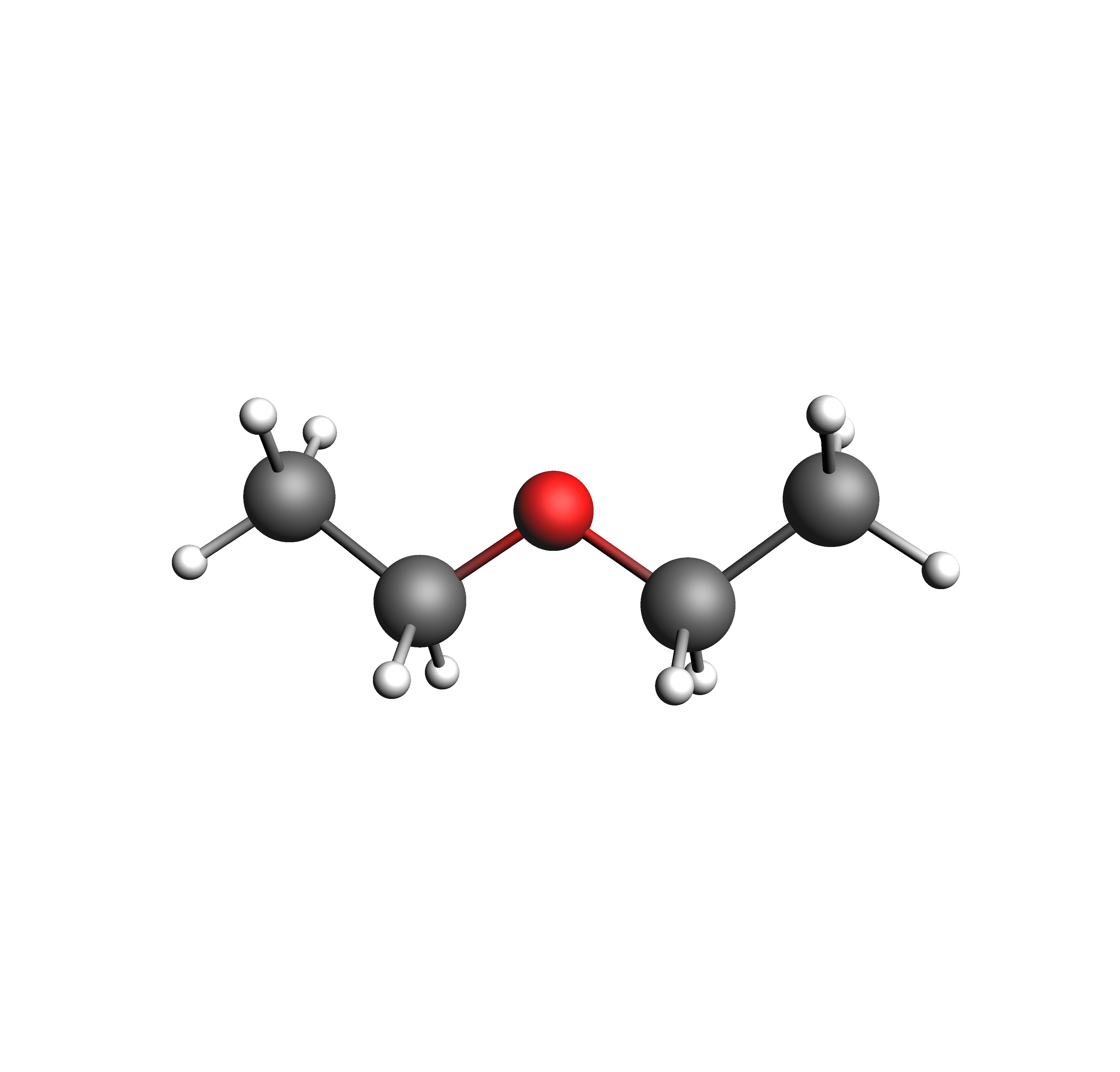 Structures used in the diethyl ether chloroform system: diethyl ether, chloroform, and the associated complex (clockwise from top left)
