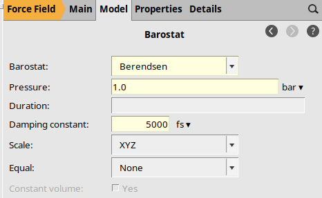 The initial structure is far from equilibrium, so we use the Berendsen thermostat and barostats.