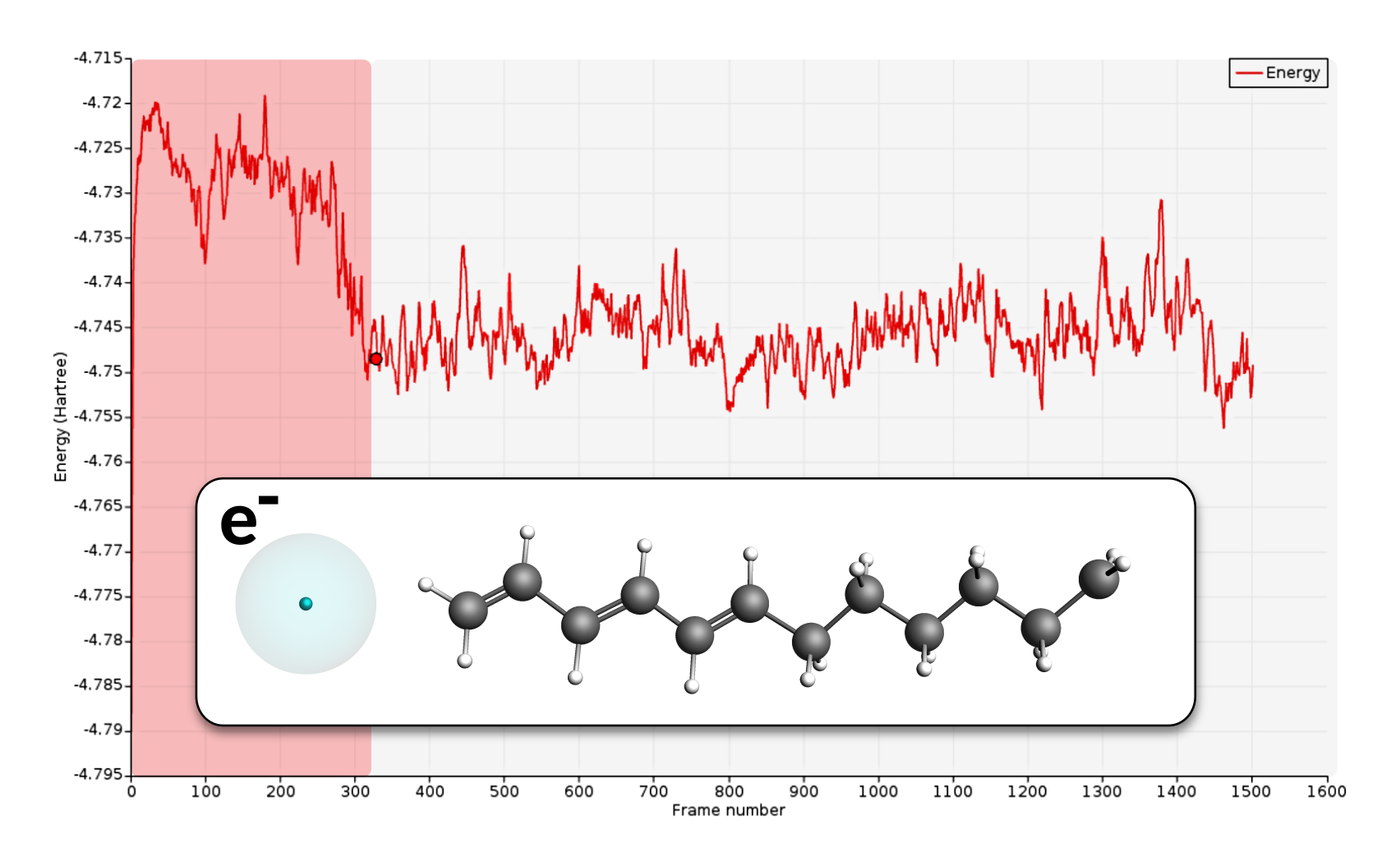 In this tutorial, eReaxFF is used to simulate the dynamics of an electron transferring through a hydrocarbon radical. A detailed description of the eReaxFF method and the carbanion (explicit electron + hydrocarbon radical) are given in: