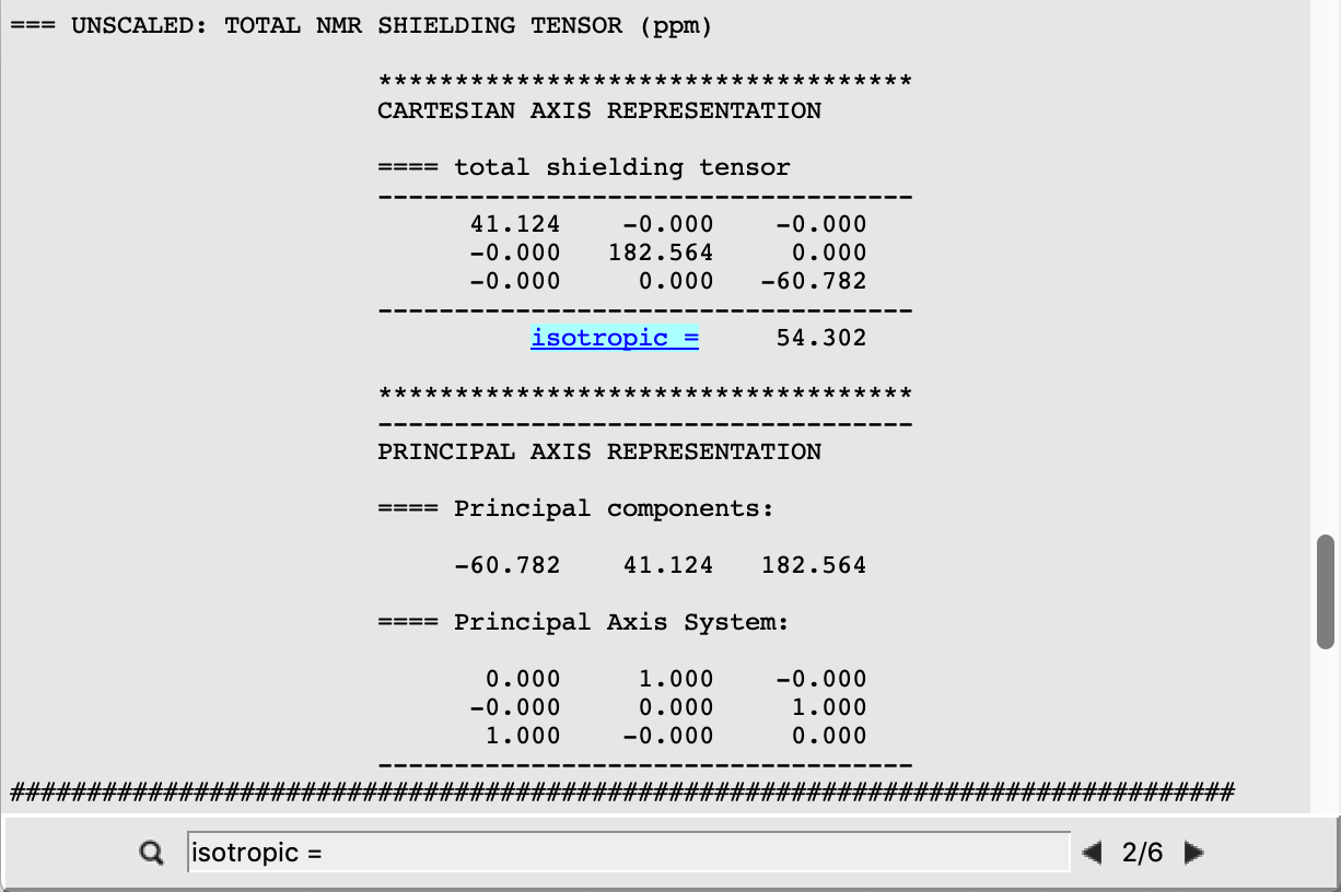 We can also retrieve the isotropic shielding constants directly by clicking on the properties listed on the top menu of AMSoutput: