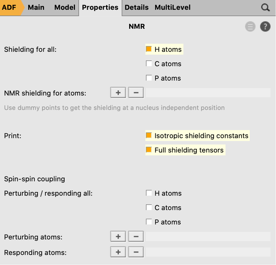 Now we will define the NMR calculation that will be performed after the geometry optimization: