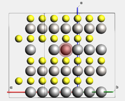 Orient the crystal along the x-axis (Ctrl+1), then rotate the view slightly the molecule for a better view of the middle Li atom in the top layer (index 25).