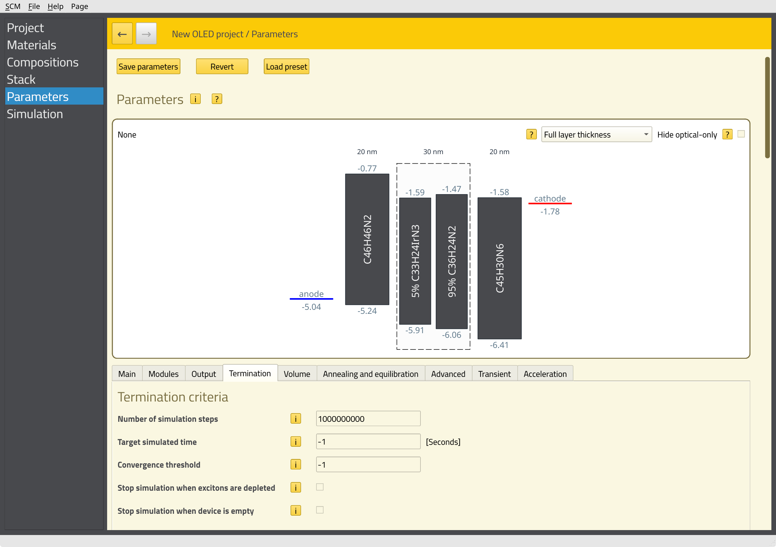 Step 4: Set up and run an OLED stack simulation¶