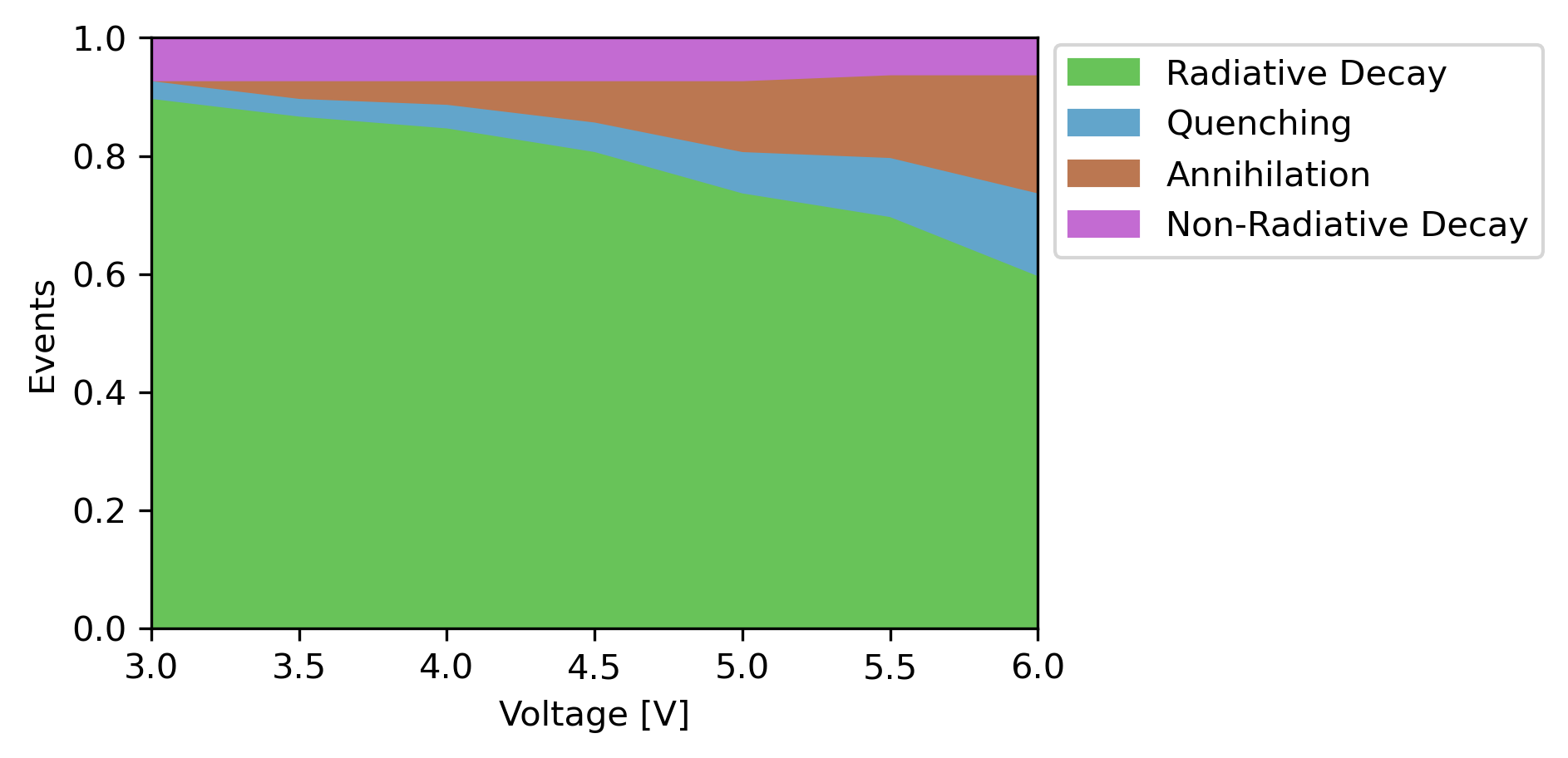 Bumblebee: Build an OLED stack from these virtual materials and perform a voltage sweep to calculate the J-V curve and investigate the roll-off in device efficiency at higher voltages.