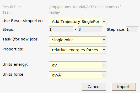 Ar32.ams and run the job.When the calculation has finished, import it into ParAMS: